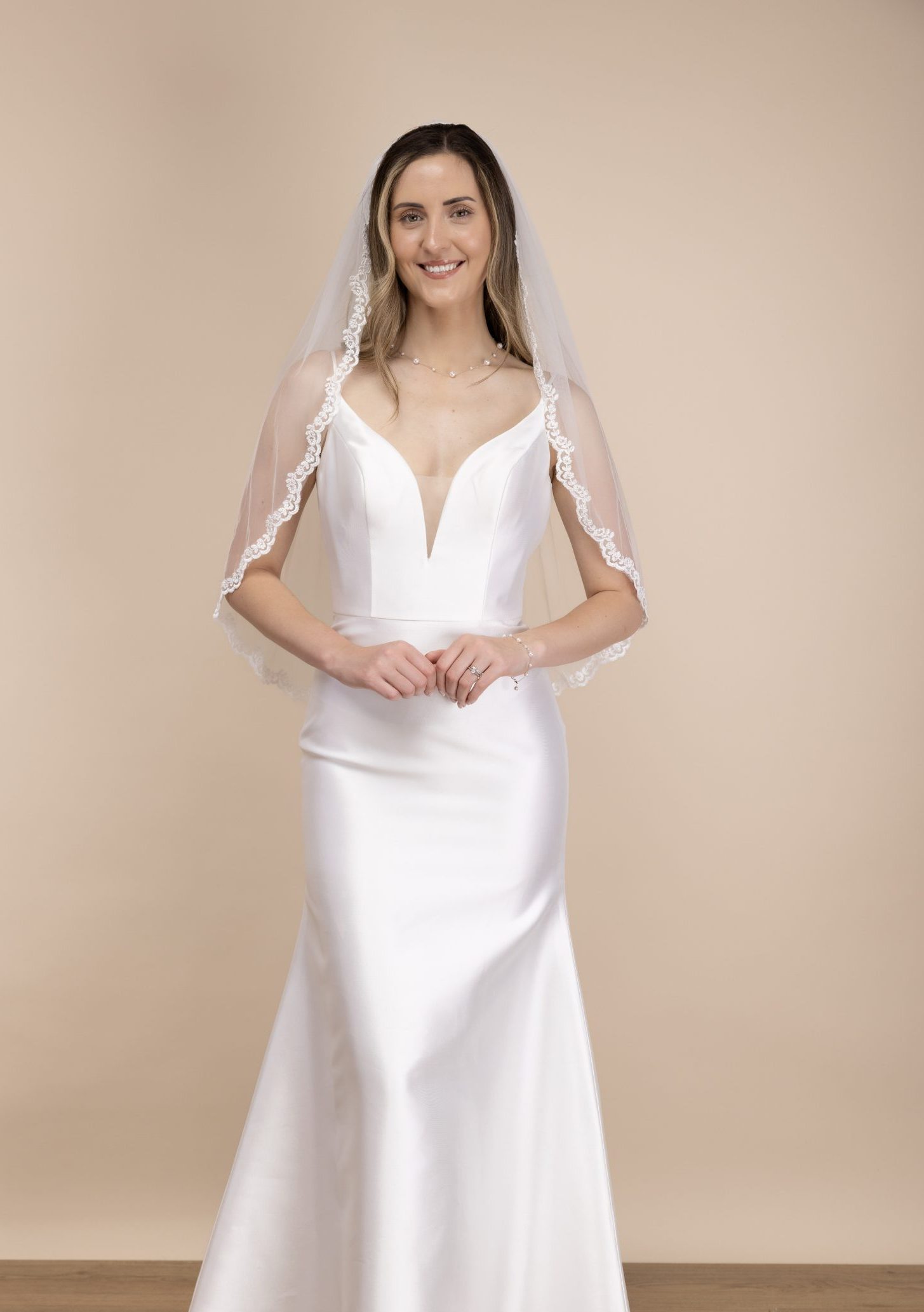 Beautiful single tired veil in the softest ivory tulle and chorded lace edging, which would compliment either a lace wedding dress or give a plain dress a little more drama.