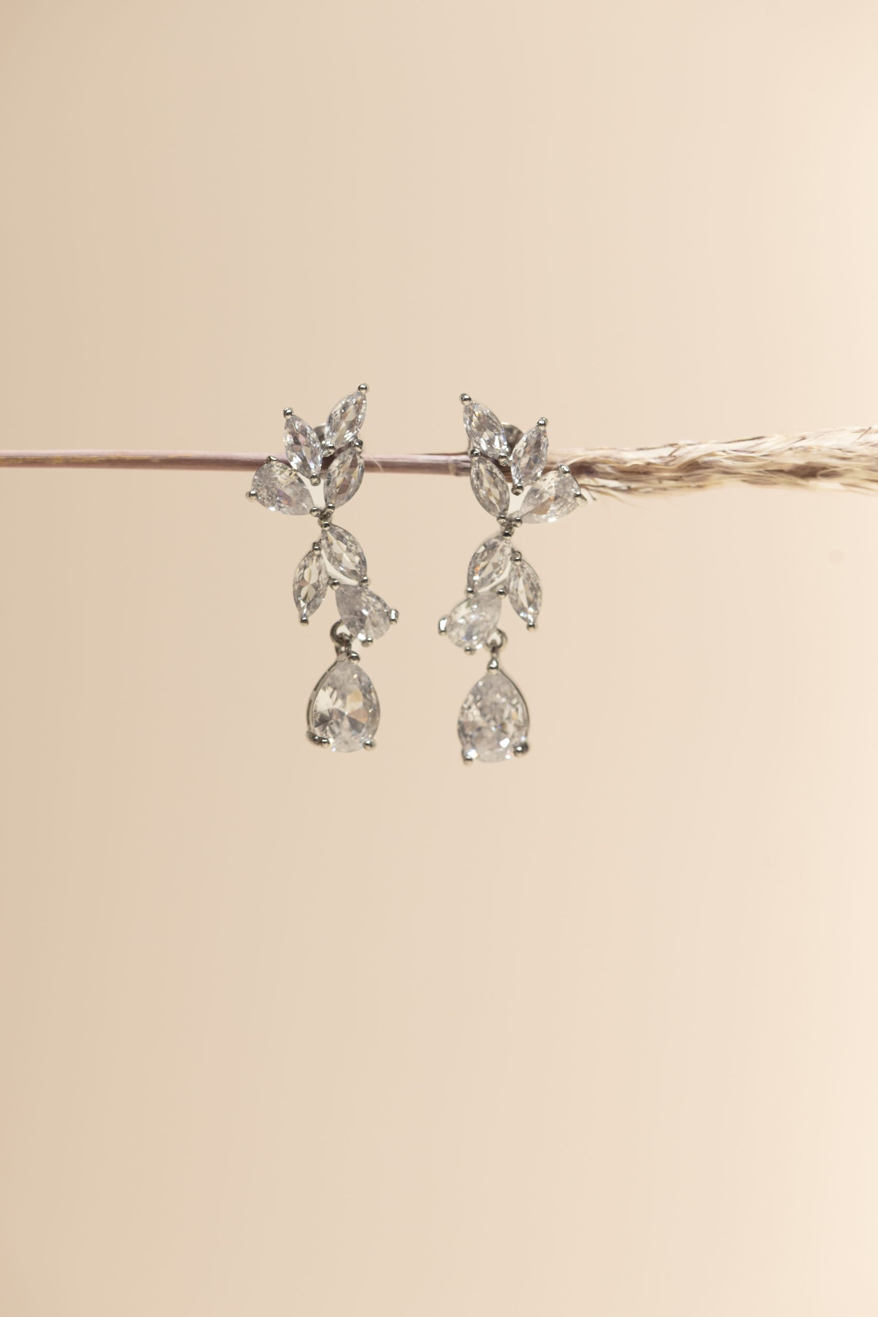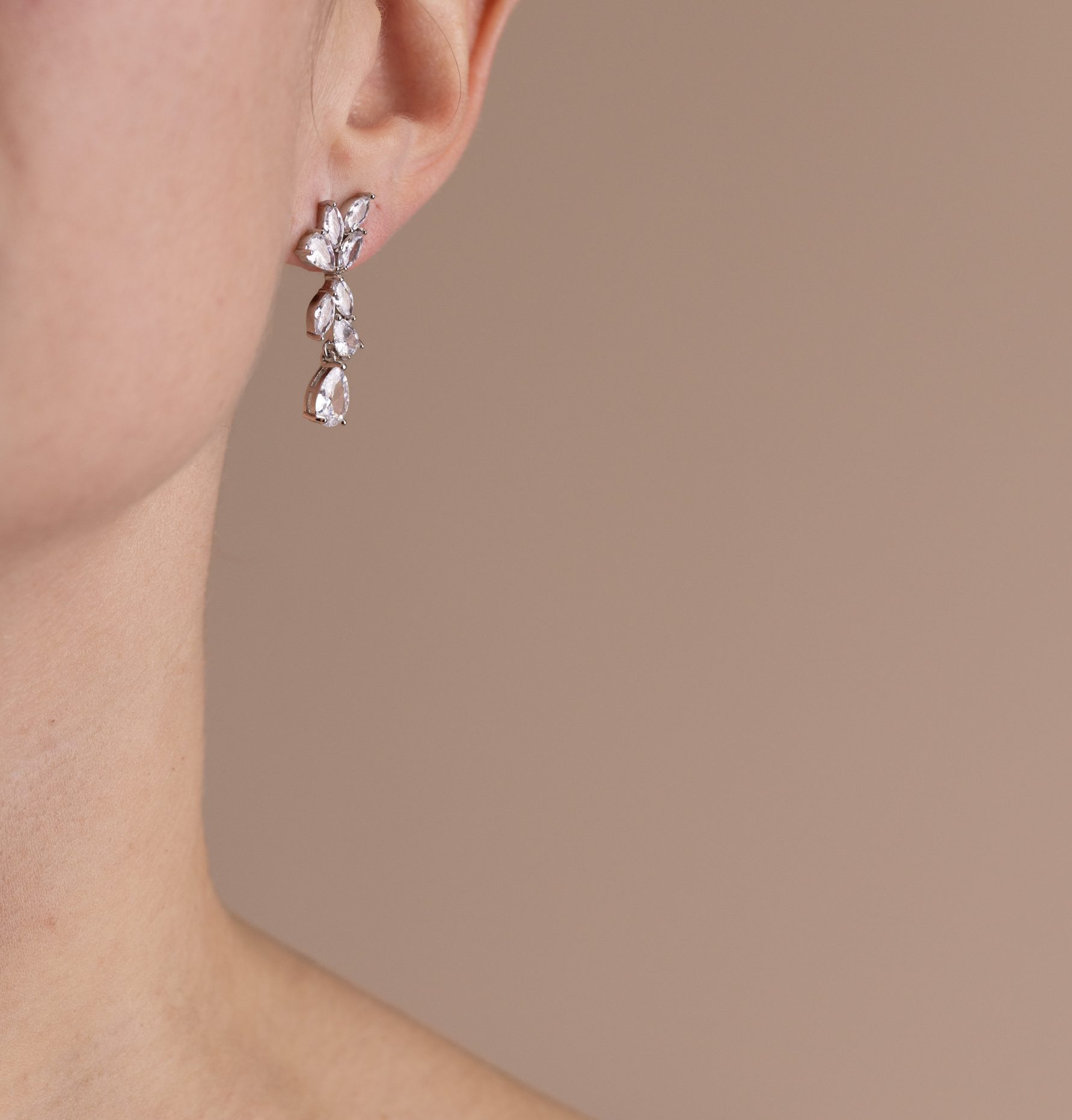 Description: For the bride who wants to forgo a necklace and let her earrings shine, these statement earrings are the perfect choice. Designed to make an impact, they beautifully complement the Paxton Bracelet for a cohesive bridal look.